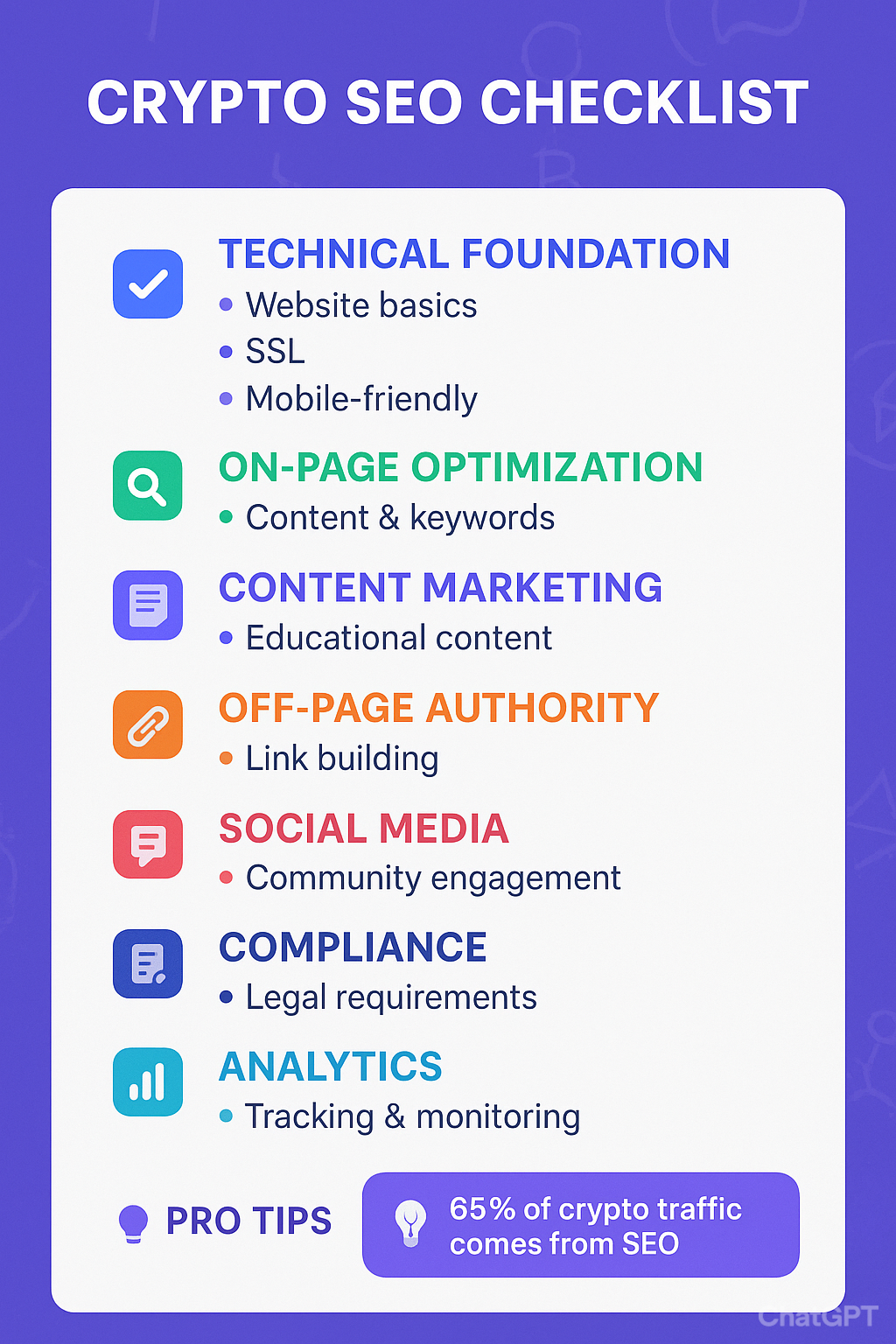 Start with solid on-page fundamentals, then expand your reach through strategic off-page efforts. With persistence and the right approach, your blockchain project can rise above the noise and reach the audience it deserves.